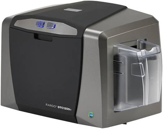 Hid Fargo DTC1250e Dual Sided ID Card Printer, Asure ID - Solo (Digital Delivery), DTC1250e, 300dpi, 100-240VAC, YMCKO Cartridge with Cleaning Roller, 100 Plain Cards Included, Grey | 50120